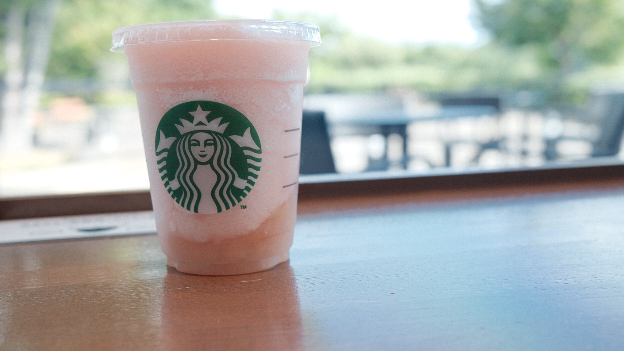 本日頼んだのはコーヒーではなく「桃のフラペチーノ」。ちょっと朝で軽くしたかったのでホイップクリーム抜き。